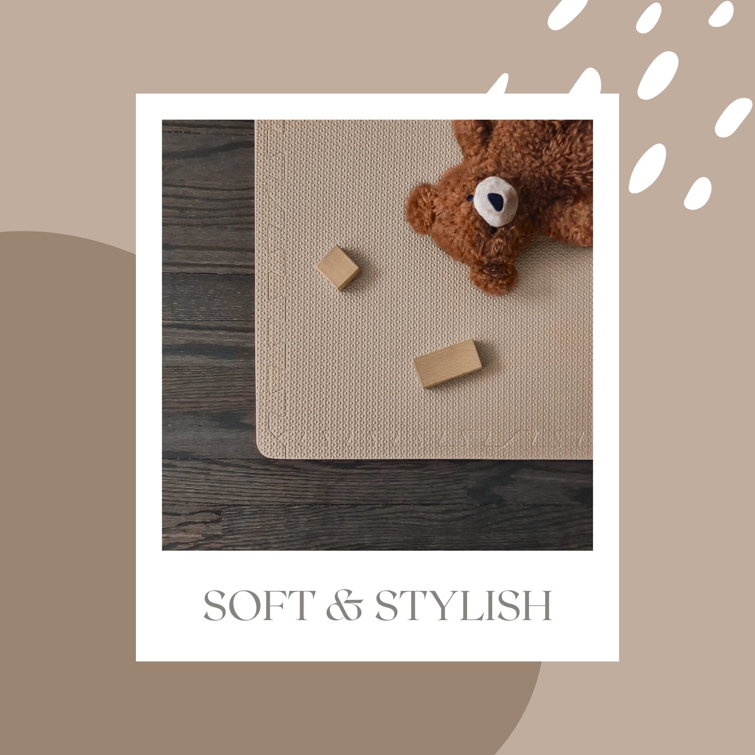 Neutral-toned, interlocking mats that invite quiet exploration and movement, supporting motor skill development